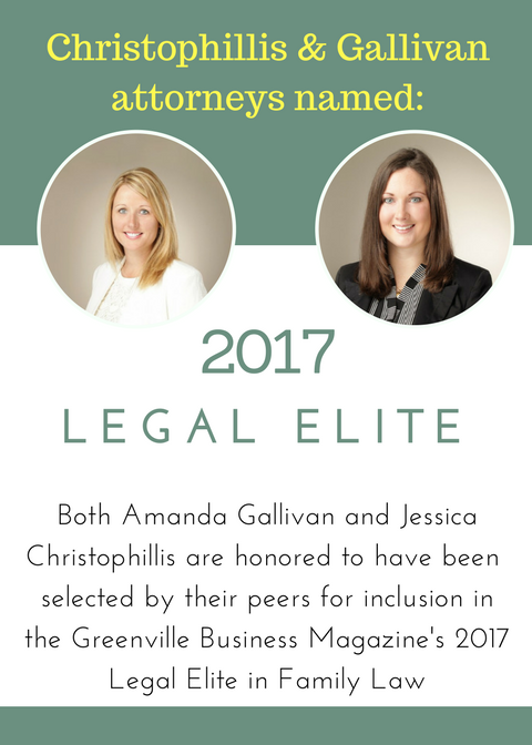 Each year, attorneys are asked to vote on their peers for inclusion in the Greenville Business Magazine's Legal Elite. The top attorneys are featured in the August issue. We are honored and humbled to be included for the third year in a row for Legal Elite in Family Law. We certainly couldn't do the job we do without our team. In our eyes, it's our team of paralegals, office manager, and attorneys that make our firm elite. Thank you to our peers for this prestigious honor! We look forward to many continued years serving the community through our family law practice.